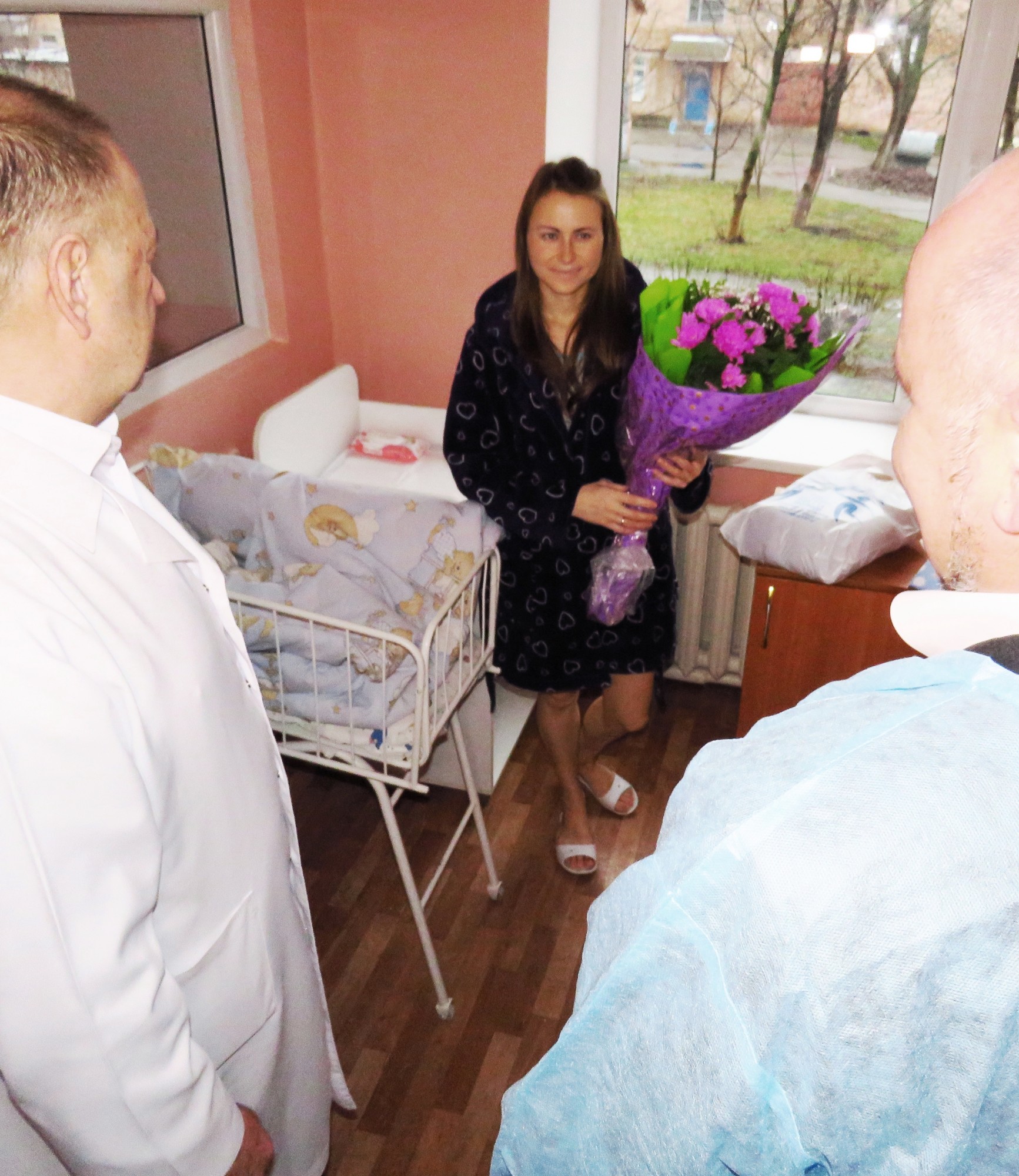 Міський голова Геннадій Дикий привітав породіль та малюків з Новим роком та Різдвом Христовим, побажав міцного здоров’я, а малюкам – гарно їсти та зростати на радість їхнім батькам. Доповненням до слів вітань стали дитячі зимові комбінезони та квіти.